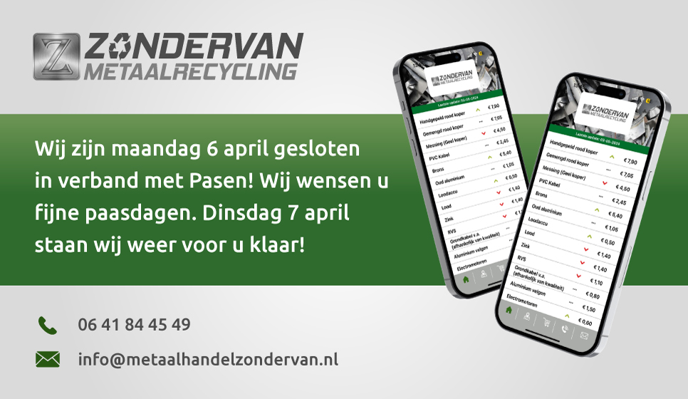 Metaalhandel Zondervan is sinds jaar en dag uw partner in het recyclen en verwerken van oud ijzer en metalen. Vader en zoon werken nauw samen in het bedrijf en zijn in de handelswereld opgegroeid. Wij draaien onze hand nergens voor om en kopen alle soorten oud ijzer en metalen in!